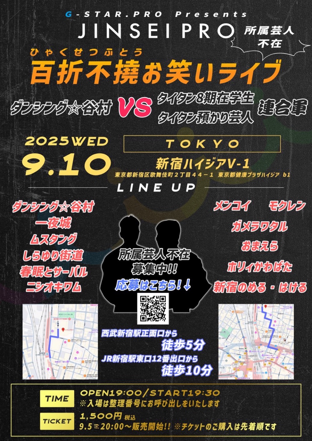百折不撓お笑いライブ ダンシング谷村 VS タイタン8期在学生&預かり芸人連合軍 9/10(水)